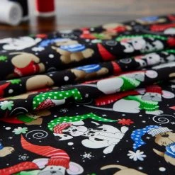 Cheapest β€οΈ Fabric Traditions π Christmas Black Winter πΆ Dogs Cotton Fabric π₯°