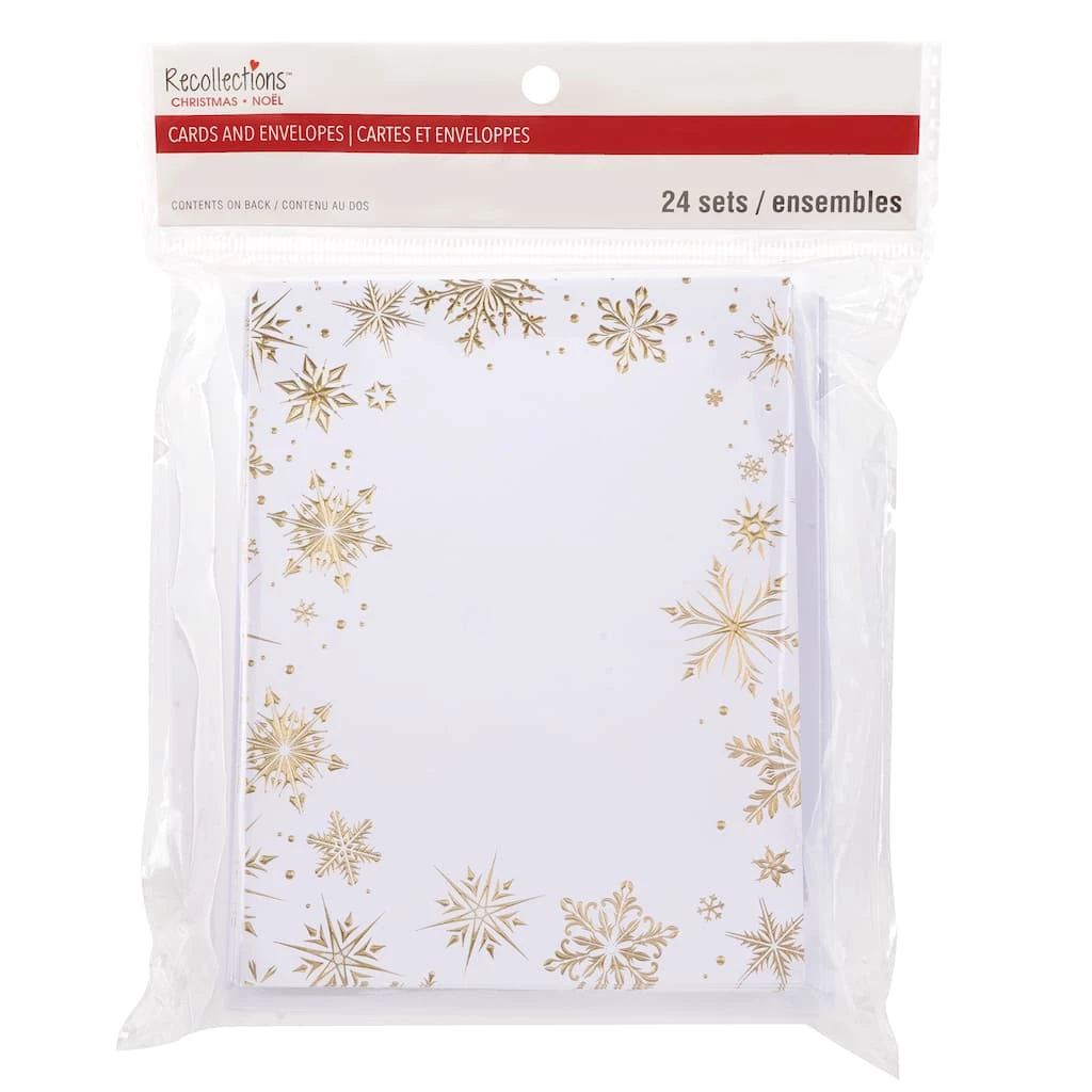 Write a thoughtful note or holiday well wishes to your friends and family with these foil snowflake border cards by Recollections. This set includes envelopes to place your thoughtful card inside!