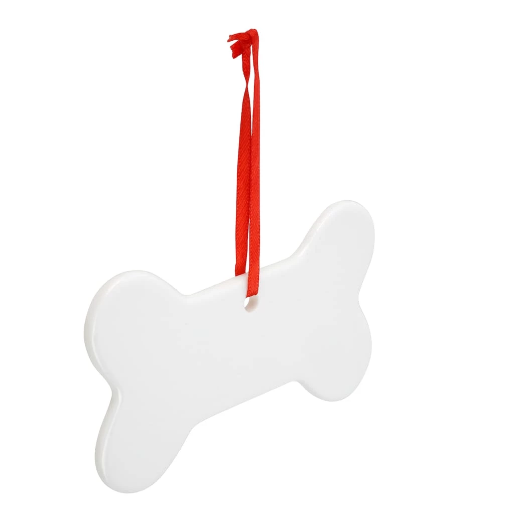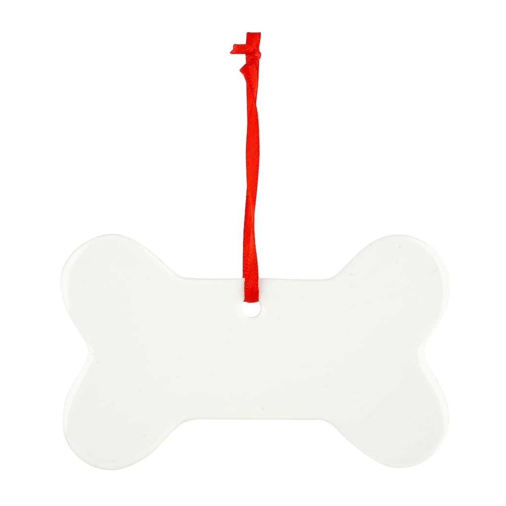 Add your own special flourish to your holiday tree with this ceramic Christmas ornament. Shaped like a dog’s bone, this piece is perfect for adding a festive reminder of your favorite canine to your tree. Embellish with paint, glitter, ribbon and more!