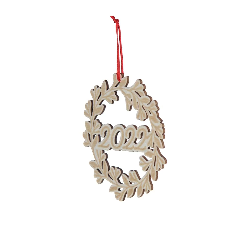 Make your holiday tree your own with this wood burned 2022 wreath ornament from Make Market. This simple unfinished piece is perfect for painting or adding tinsel, buttons and more. Add a festive bow and hang on your tree to give your home some handmade Christmas cheer!