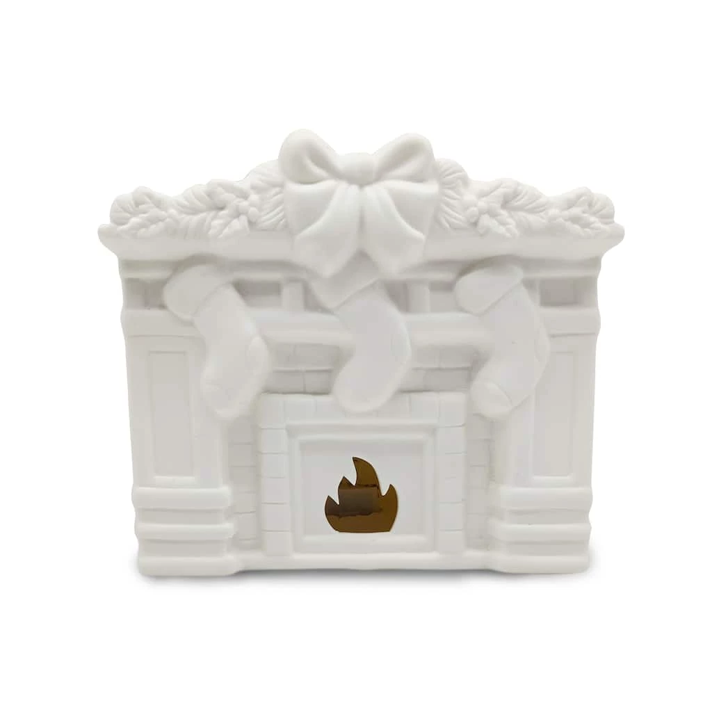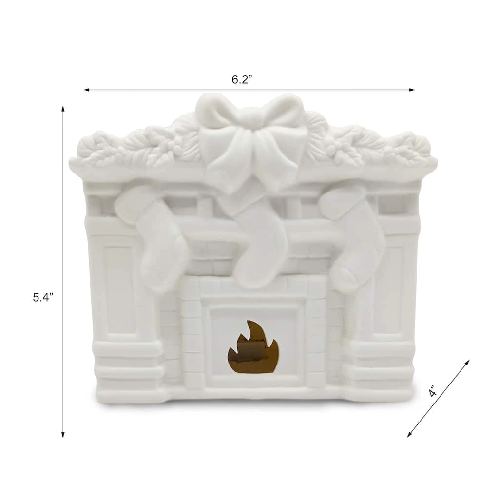 Add your own special flourish to your holiday dΓ©cor with this unfinished ceramic fireplace. All decked out with stockings, a garland and a big bow, decorate this LED lighted accent piece with paint, glitter, and other embellishments to bring Christmas cheer to your home for years to come.