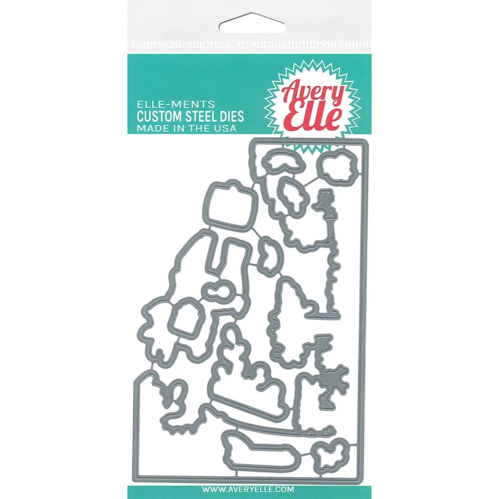 Avery Premium Elle-ments Dies are customized to complement and coordinate with the stamp sets. Use them in your favorite tabletop die cutting machine. These 12 metal dies are cut into woodland critters, trees, a person riding a reindeer, plants, and more.