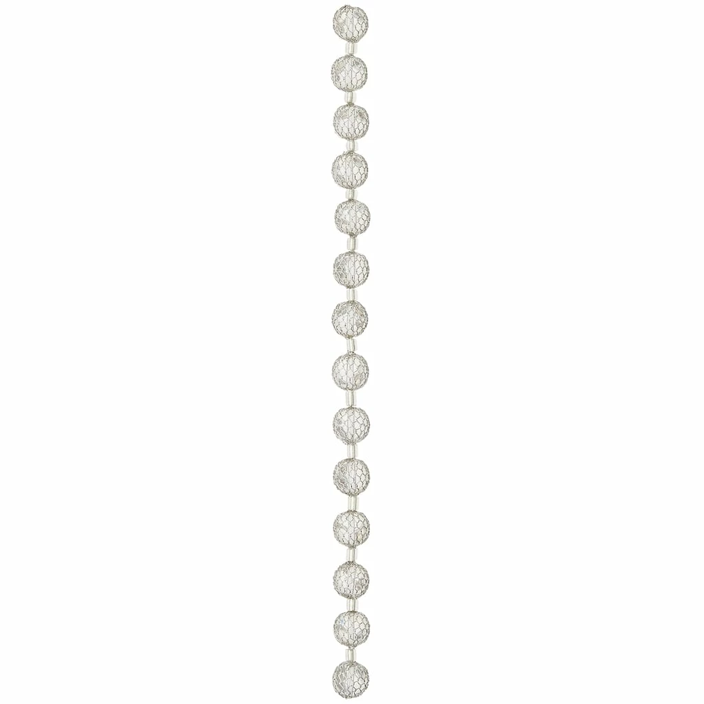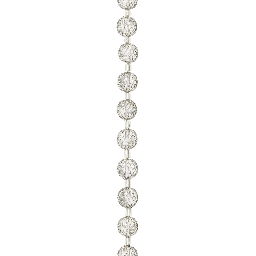 Create unique necklaces, bracelets, watchbands and more with these unusual beads. The round glass beads are clear and are covered in a white metal mesh that resembles a honeycomb pattern.Β