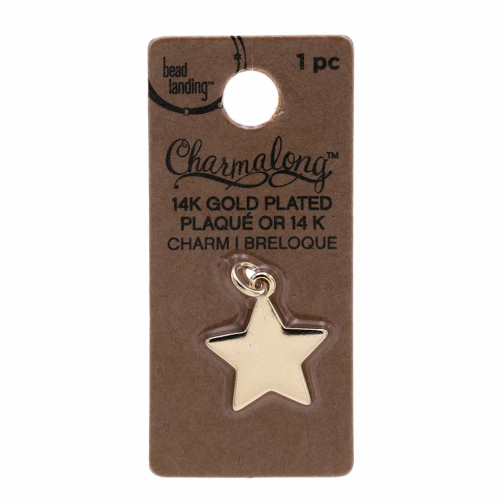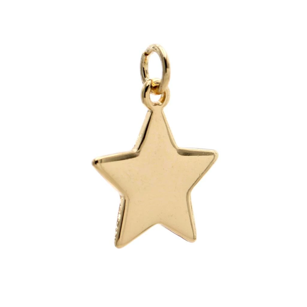 Create a stunning necklace with this 14k gold plated star. This charm can also be used for other jewelry types and keychains.