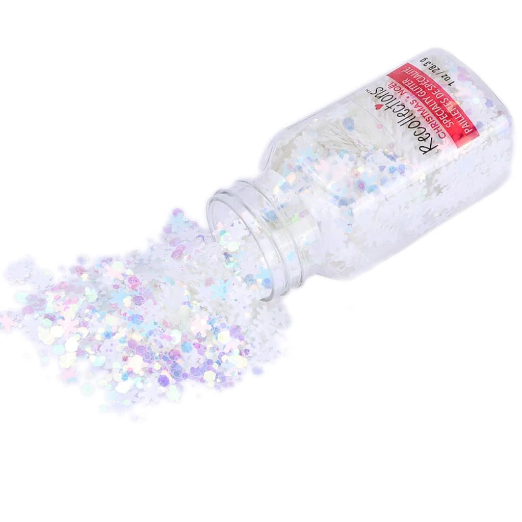This bottle of iridescent snowflake shaped glitter is perfect for embellishing Christmas papercraft projects and party decorations. The creative possibilities are absolutely endless!