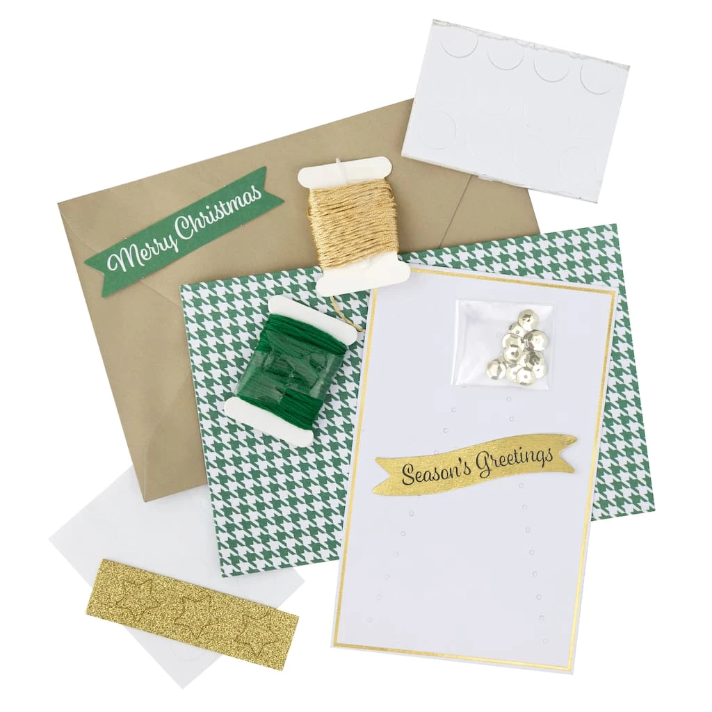 Design up to 6 holiday cards with this cardmaking kit. Customize each card to your liking with the included cards, envelopes, twine and stickers!