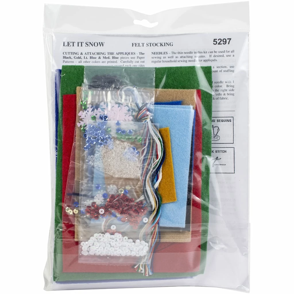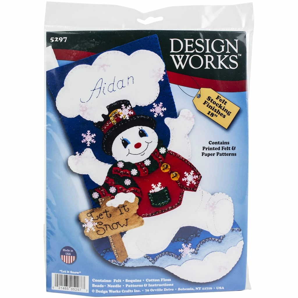 Create an adorable stocking that everyone will love! It will be a great decorative item to be used year after year. This package includes everything needed to complete the Let It Snow stocking.