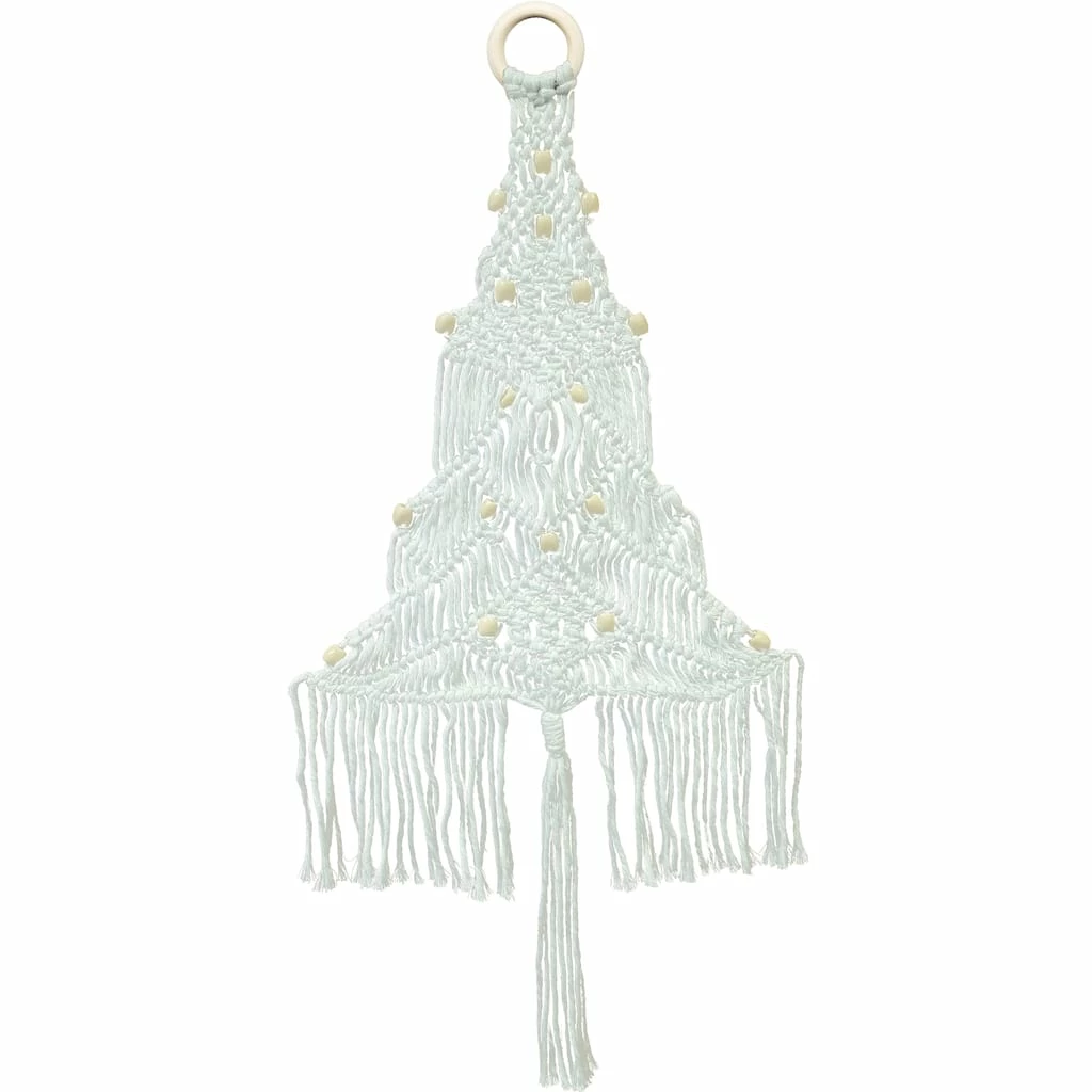 The macramé wall hanging features unique patterns and weaving. Hang in a room to add interest to your home décor!