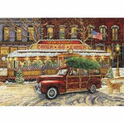 Beautiful designs and top-quality materials make Design Works one of the top cross stitch kit makers worldwide. This package contains everything you need to complete this cross stitch featuring a Christmas scene outside Route 66 diner.