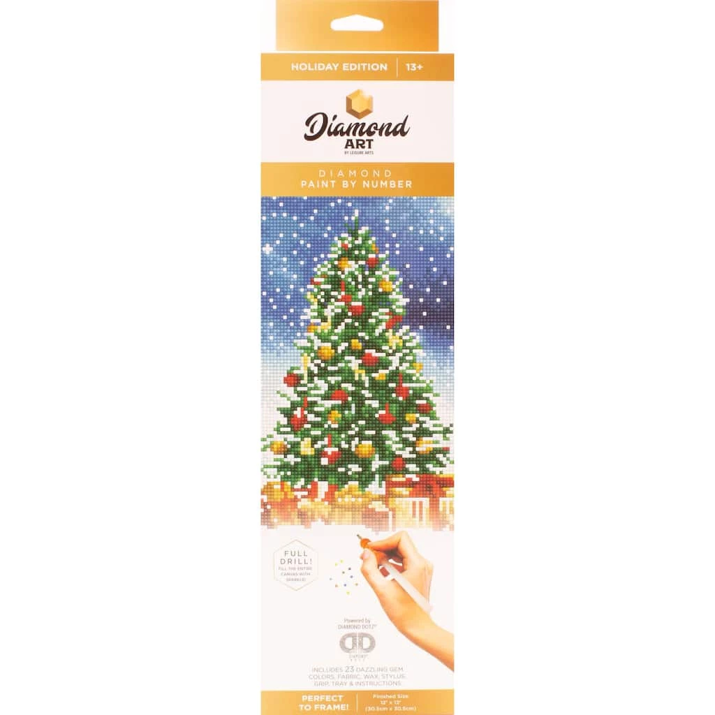 Start diamond painting with Diamond Art by Leisure Arts, powered by Diamond Dotz! Create a dazzling holiday-themed piece of art with beautiful faceted diamonds on high-quality color printed fabric. Full Drill means the whole canvas is covered with sparkly faceted gems.