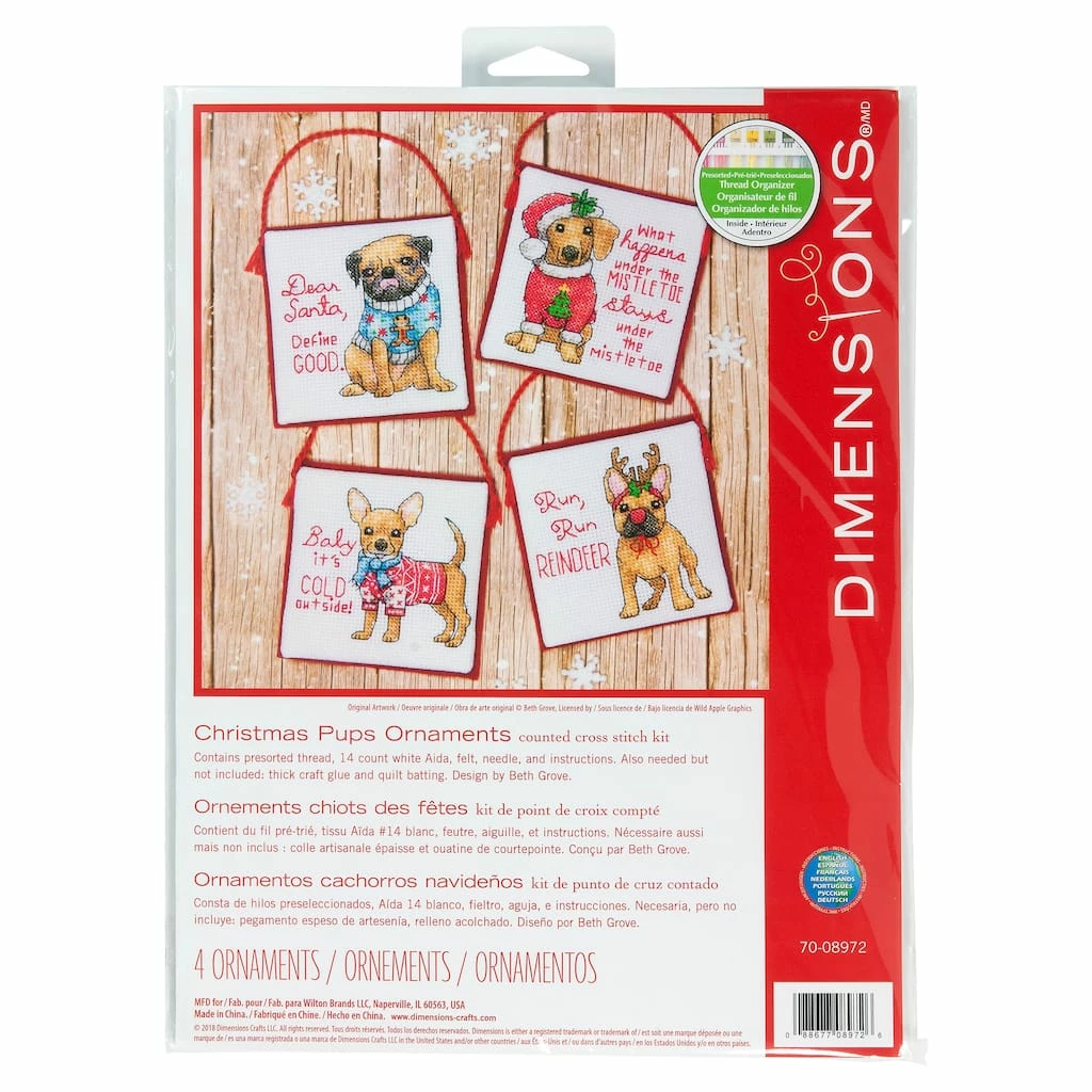 Learn to cross stitch the fun way using this counted cross stitch kit from Dimensions. The kit includes all the essential materials and instructions required to sew 4 pup themed Christmas ornaments. Gift them to a loved one or hang them in your room for a dash of whimsy.