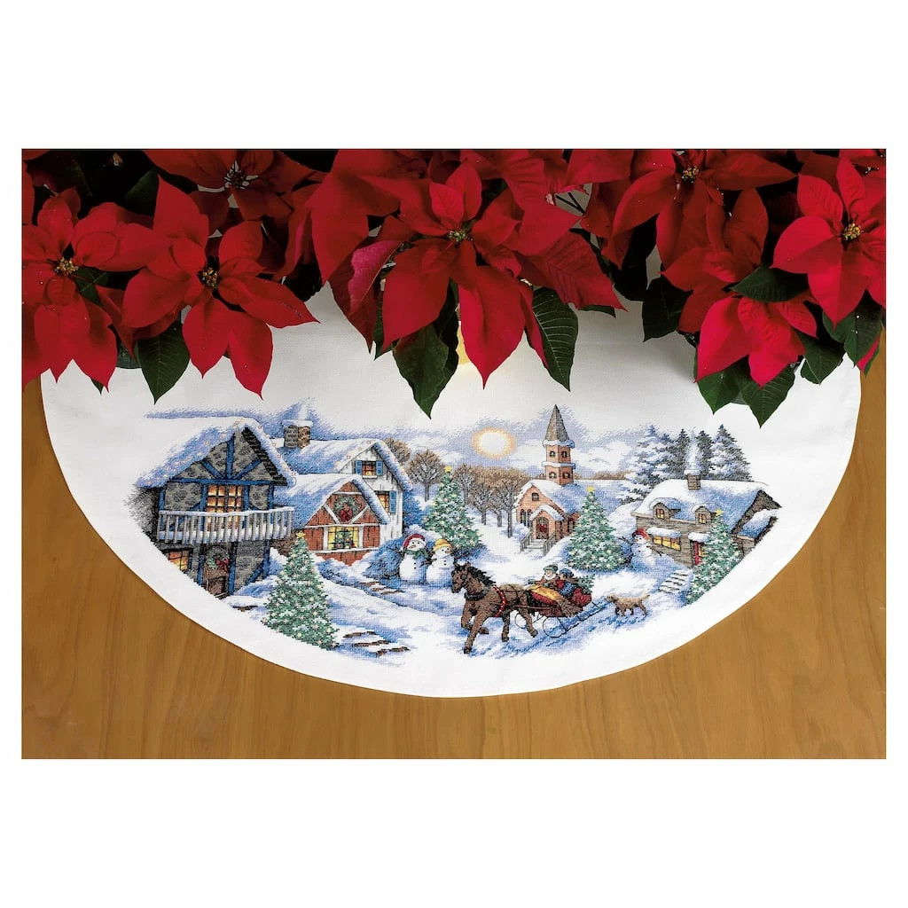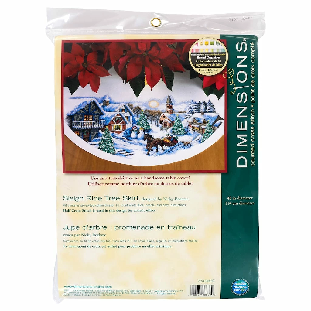 Learn to cross stitch the fun way using this counted cross stitch kit from Dimensions. The kit includes all the essential materials and instructions required to sew a sleigh ride tree skirt. Gift it to a loved one or hang it in your room for a dash of whimsy.
