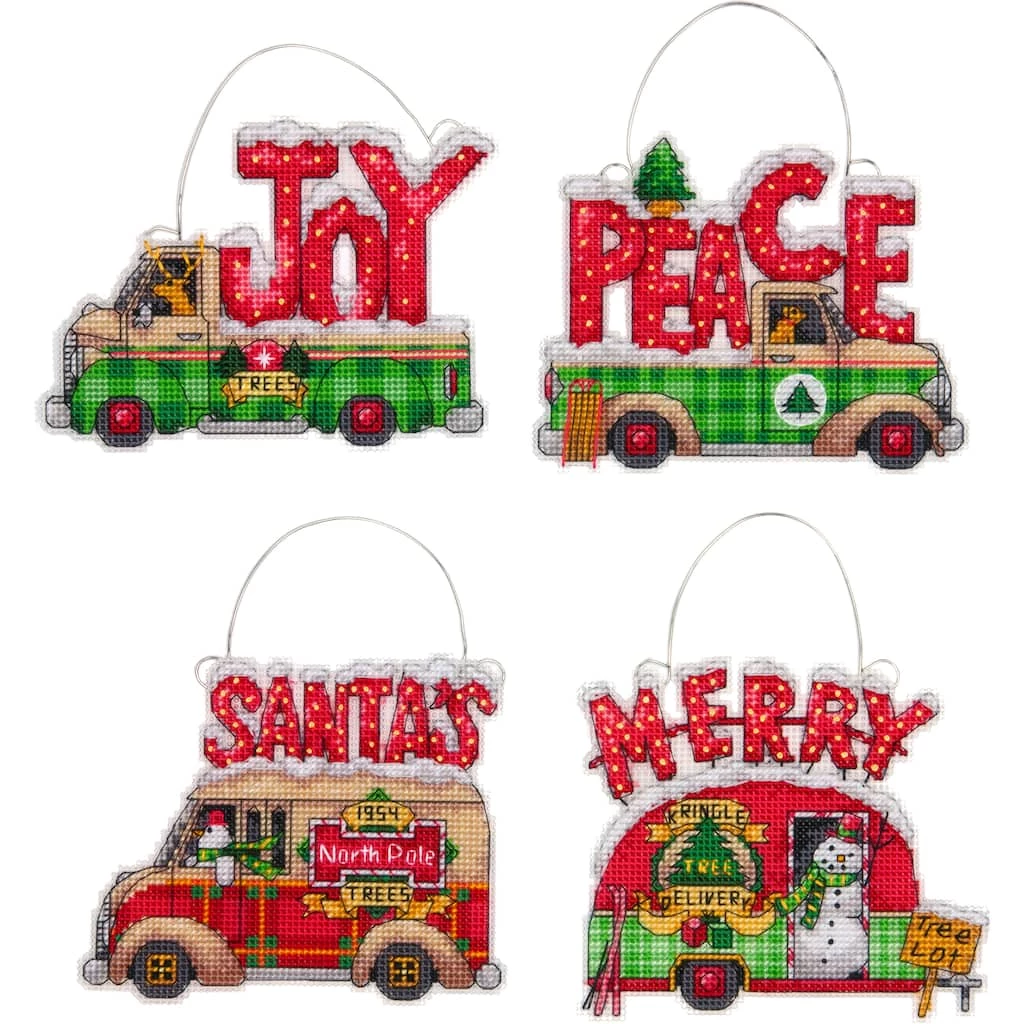 Trucks in all shapes and sizes are rolling in with their festive deliveries. Worked in counted cross stitch on plastic canvas, the Holiday Truck Ornaments by Dimensions are ideal for tree or package decorating.