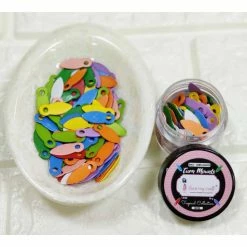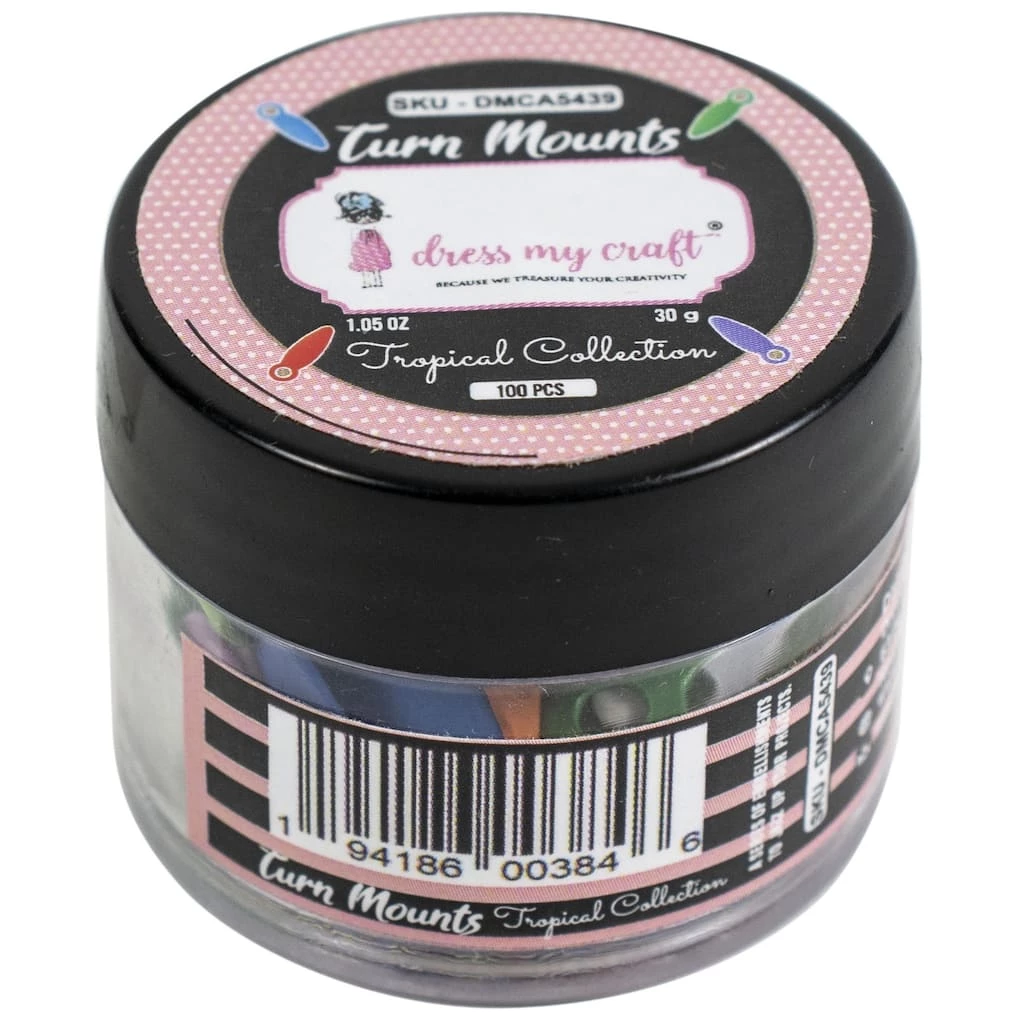 These turn mounts can be adhered with brads (sold separately) and used as an embellishment to hold down pictures or other items or they can be placed in a shaker card.