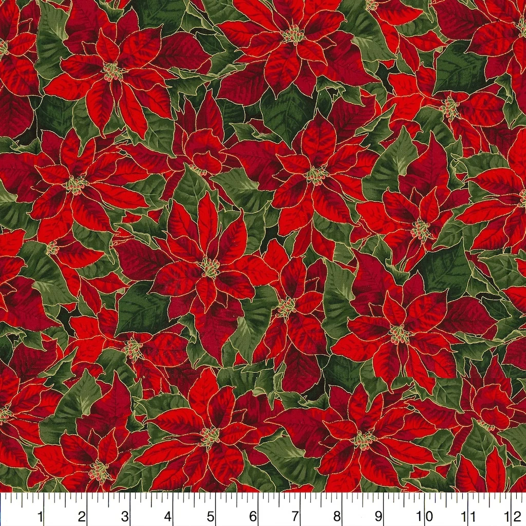 Usher in the holiday spirit with this festive poinsettia fabric from Fabric Traditions. This lightweight material is ideal for quilting, home dΓ©cor projects and seasonal crafts.