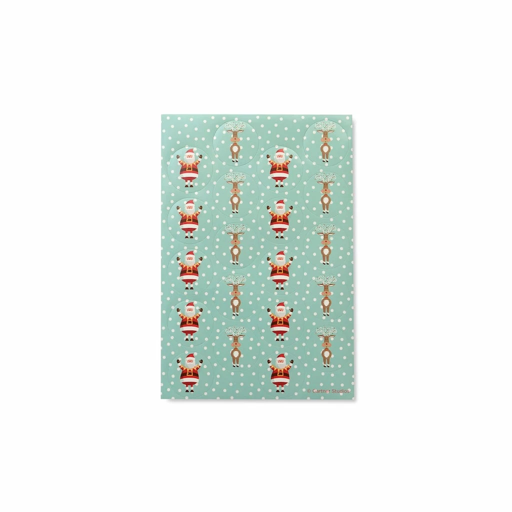 Put a festive finishing touch on your holiday stationery, invitations, note cards, thank you notes, packages or envelopes with these stickers featuring fun Santas and Reindeer. The self adhesive backing allows for an easy application.