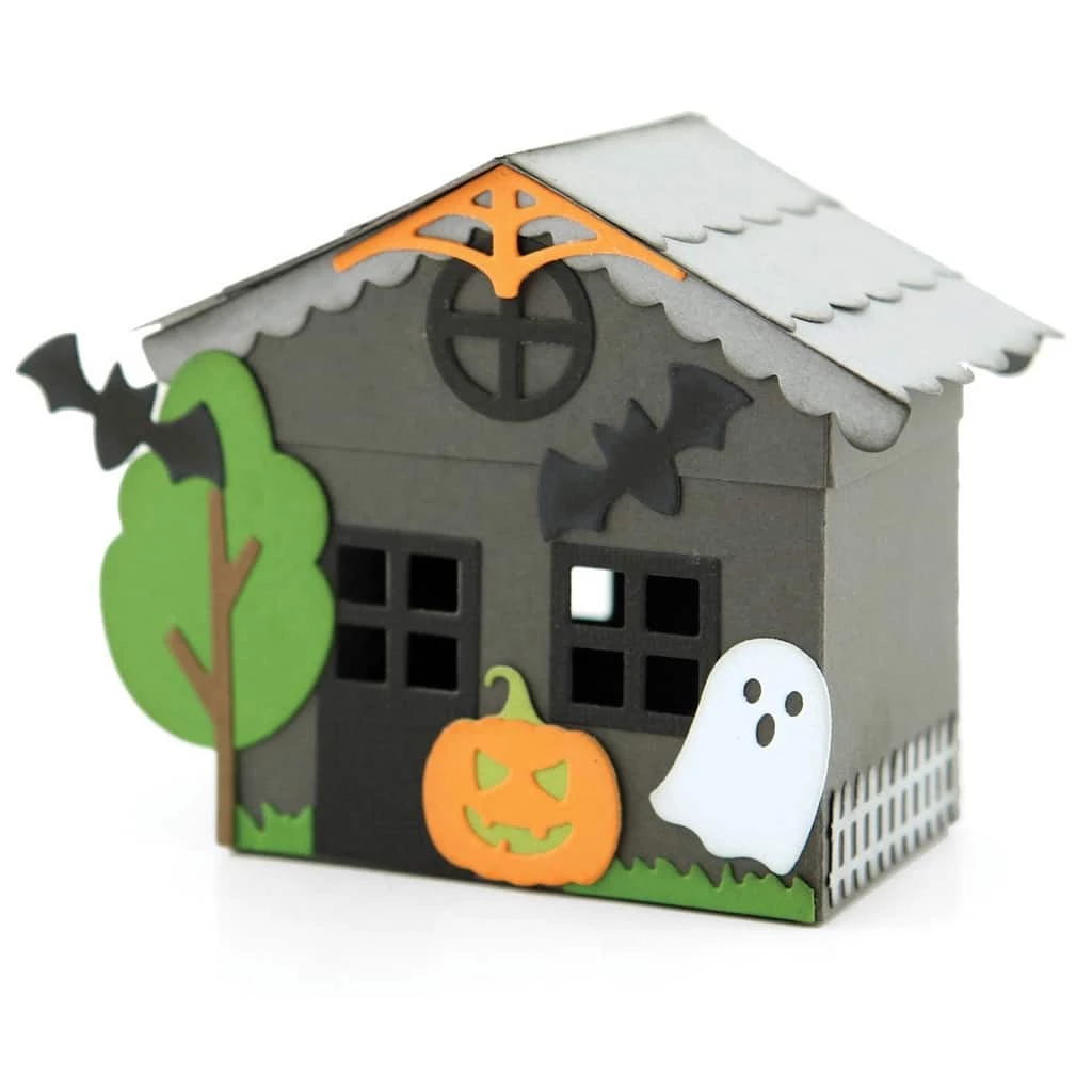 Everything in miniature is so adorable, including this house favor box! Its roof is a slip lid so you can place treats or a tea light inside. This versatile project comes with lots of embellishments so you can dress your house up for so many occasions including, Halloween, Winter, Christmas, Spring, Summer, and Fall. Let your creativity run free when you make this project or make a whole village. Each set contains 17 thin metal dies. Assembled size 3 x 3.125 inches. Imported.