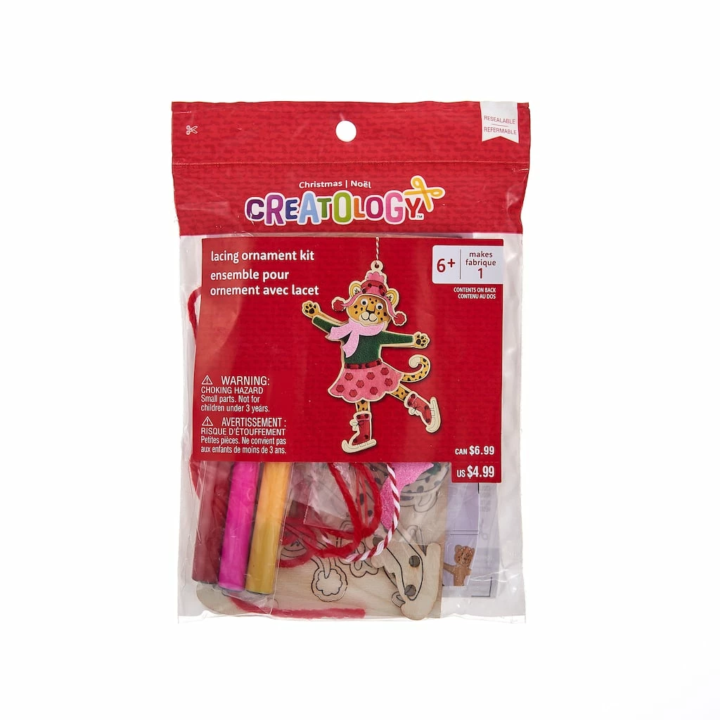 Your little one will have a blast assembling this ice skating cheetah lacing ornament. It includes a variety of contents needed for them to get started immediately.