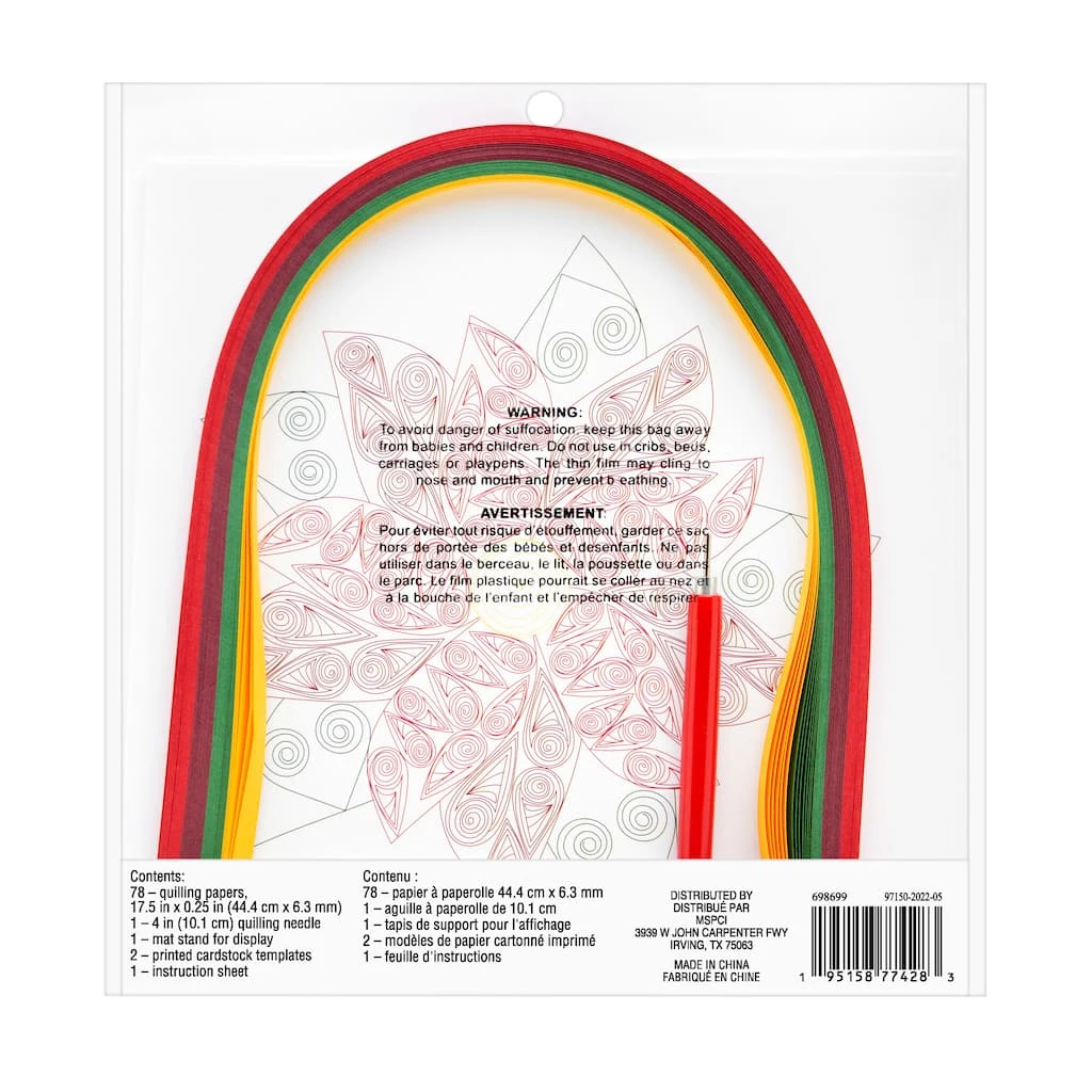 - 78 quilling papers (17.5″ x 0.25″/4.44cm x 6.3mm each)