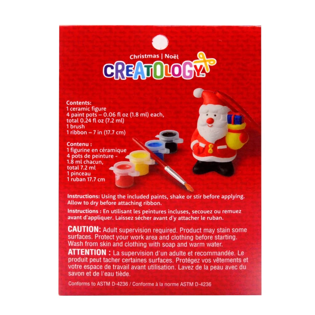 Bring in holiday cheer by painting this ceramic Santa ornament by Creatology. This kit includes all materials to transform the included piece into a holiday favorite. Once dry and complete, attach ribbon and hang on your Christmas tree.