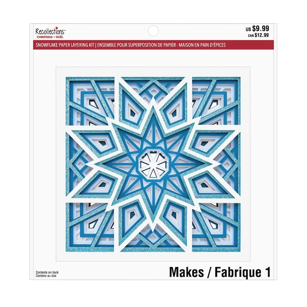 This fantastic snowflake paper layering kit from Recollections will provide a fun and relaxing outlet for your creativity this Christmas season. Complete with decorative paper sheets, stencils and a mat stand for display, this kit has everything needed to add your own festive touch to your holiday dΓ©cor.