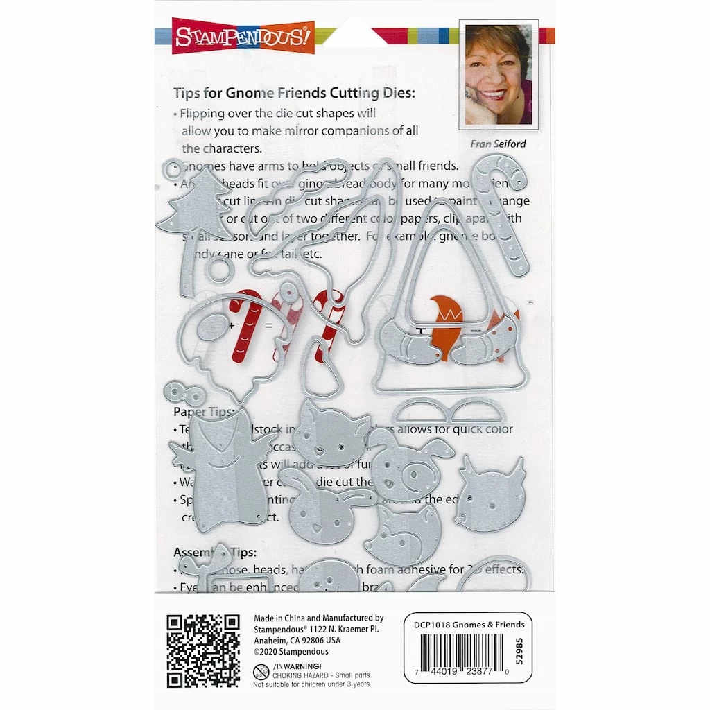 Stampendous Dies alleviate the hassle of having to hand cut detailed paper shapes. These dies will work with most manual die cutting machines. They’re perfect for cards, scrapbook embellishments, and other art projects. Fran’s Designs include gnomes, hats, gingerbread, gifts, animals, and more.