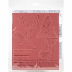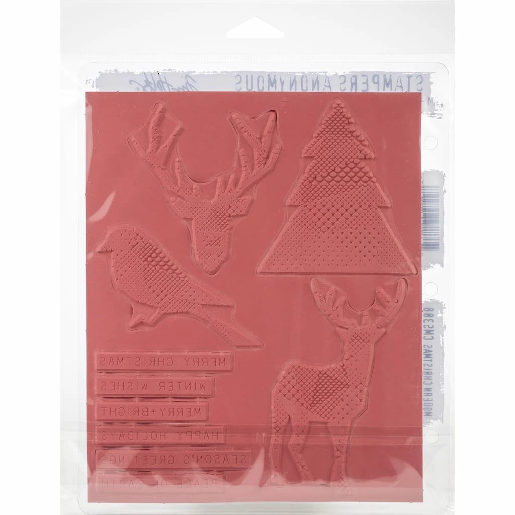 These red rubber stamps come mounted on cling foam so you can use them with any acrylic block (sold separately). Great for using with Tim’s signature distressing techniques! Stamps come on a 3-hole punched sheet for easy storage. This package contains an assortment of cling rubber stamps mounted on an 7″ x 8.5″ backing sheet.