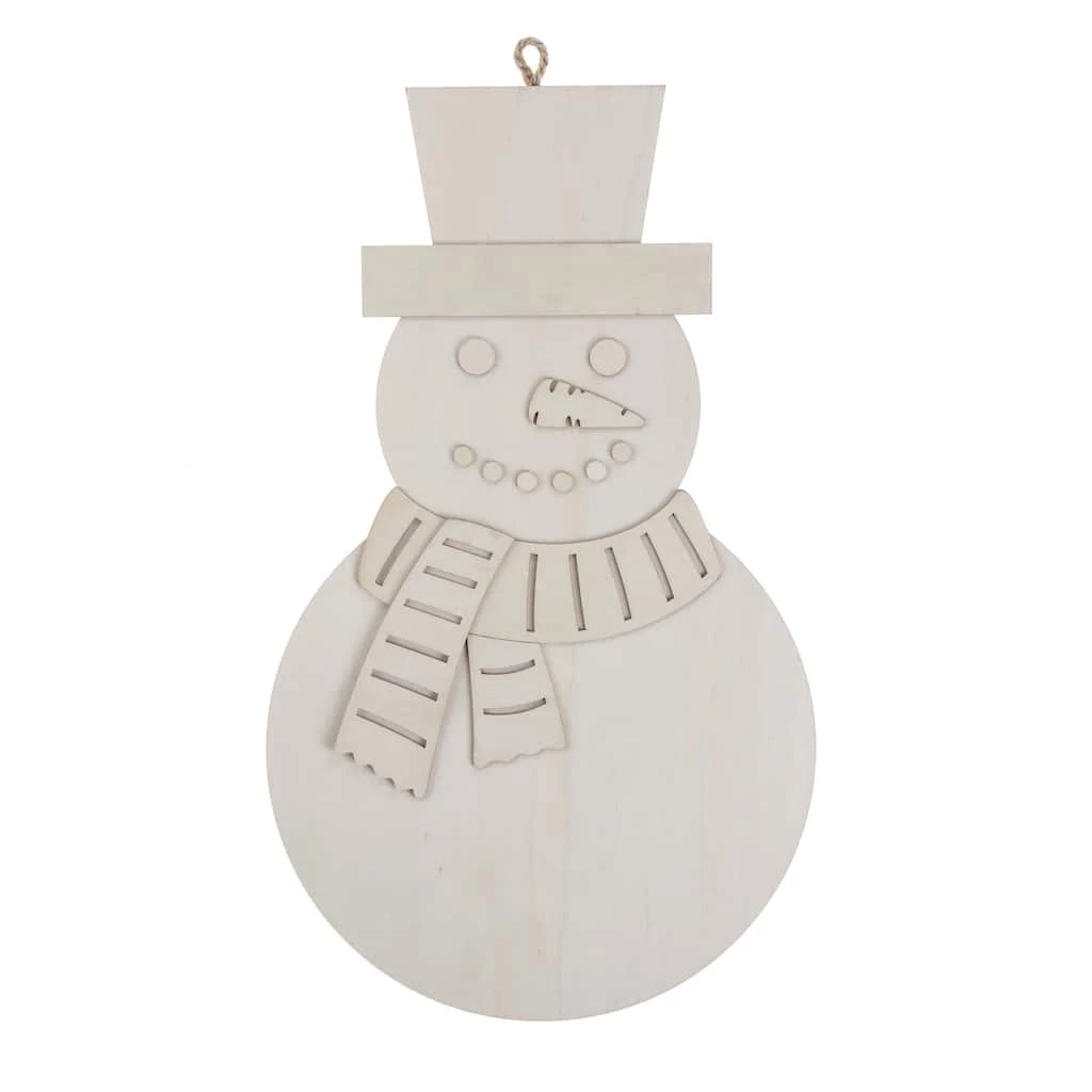 Use this unfinished snowman wall hanging by Make Market for a fun project this Christmas. Decorate it with markers, paints, glitter and embellishments then display it in your home.
